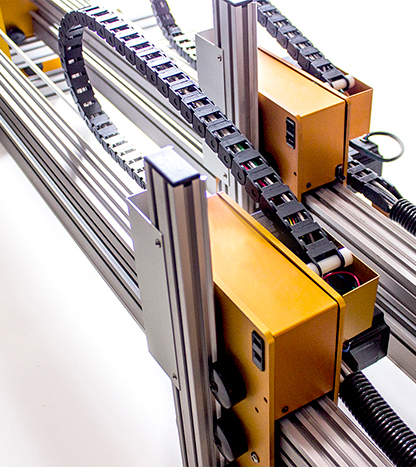 El MC2 tiene un puente completamente desmontable que es el hogar de todos los componentes electrónicos. El puente puede deslizarse fácilmente en cualquier marco para diferentes aplicaciones. Una MC2 puede cumplir con una variedad de aplicaciones mediante el intercambio de un eje Z con un router para madera a un eje de plasma Z en literalmente segundos. Ahora deslice el puente de su mesa de madera a un marco de plasma libre de polvo y material inflamable. En segundo su poder deslizar el pórtico completamente sin modificar el cableado o las herramientas necesarias.